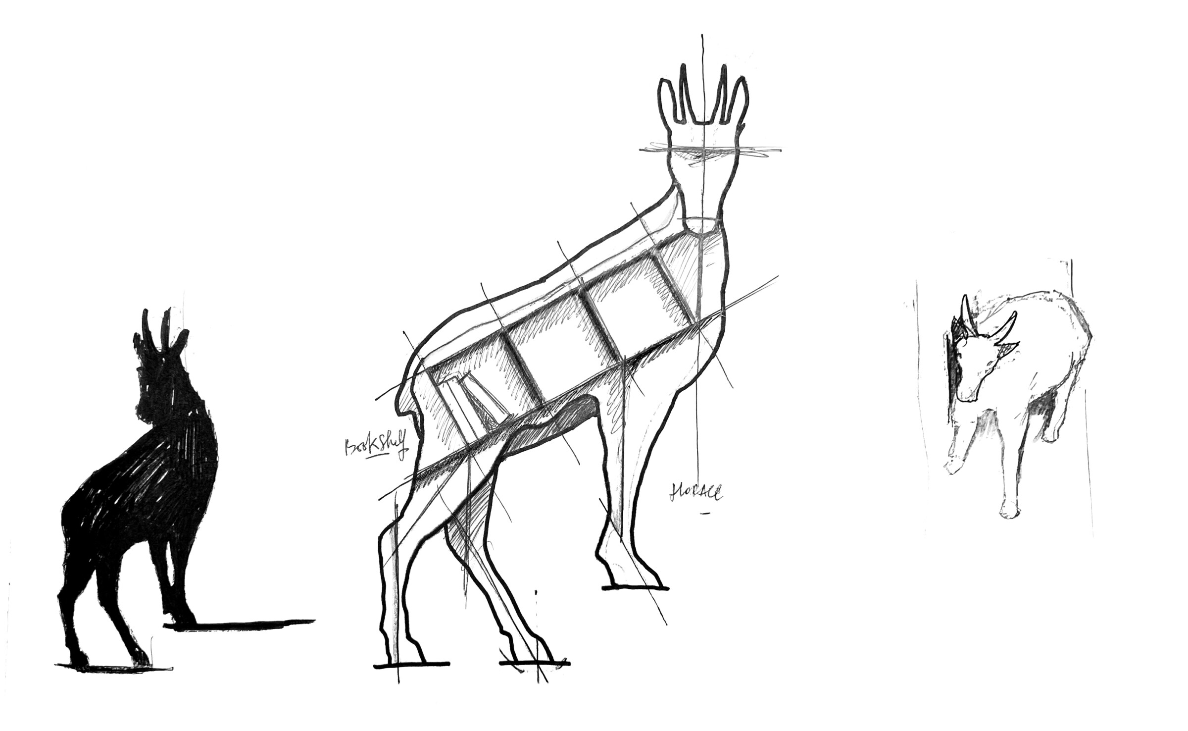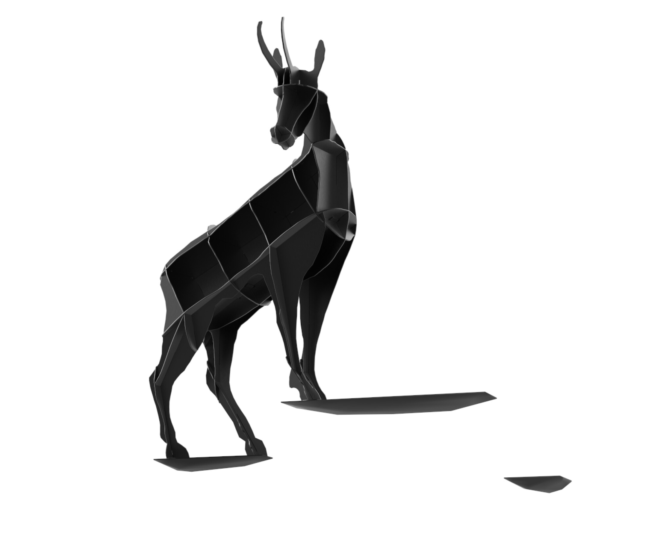 The outline is tense, sinewy, giving the silhouette wild, elusive features. The head turned at an angle allows looks to be exchanged, breathing life into the figure, a little of the reality of the animal from which it is inspired.
